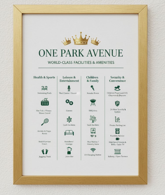 One Park Avenue, developed by Intiland, is a luxury apartment complex in the prestigious Gandaria area of South Jakarta. It is designed with a resort and “Zen-inspired” concept, dedicating approximately 70% of its land to lush greenery and water features.
