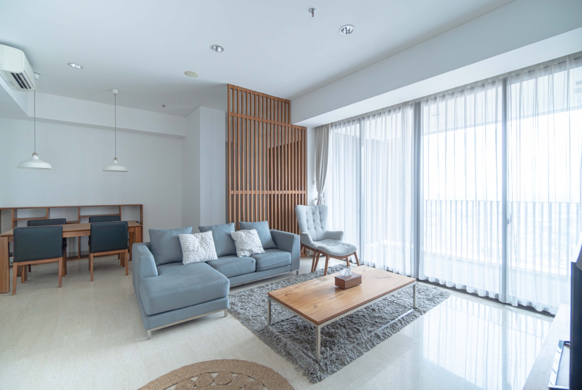 Modern living at its finest in this elegant 3-bedroom apartment at One Park Residence, Gandaria South Jakarta. Enjoy luxurious amenities and a prime location in the heart of the city