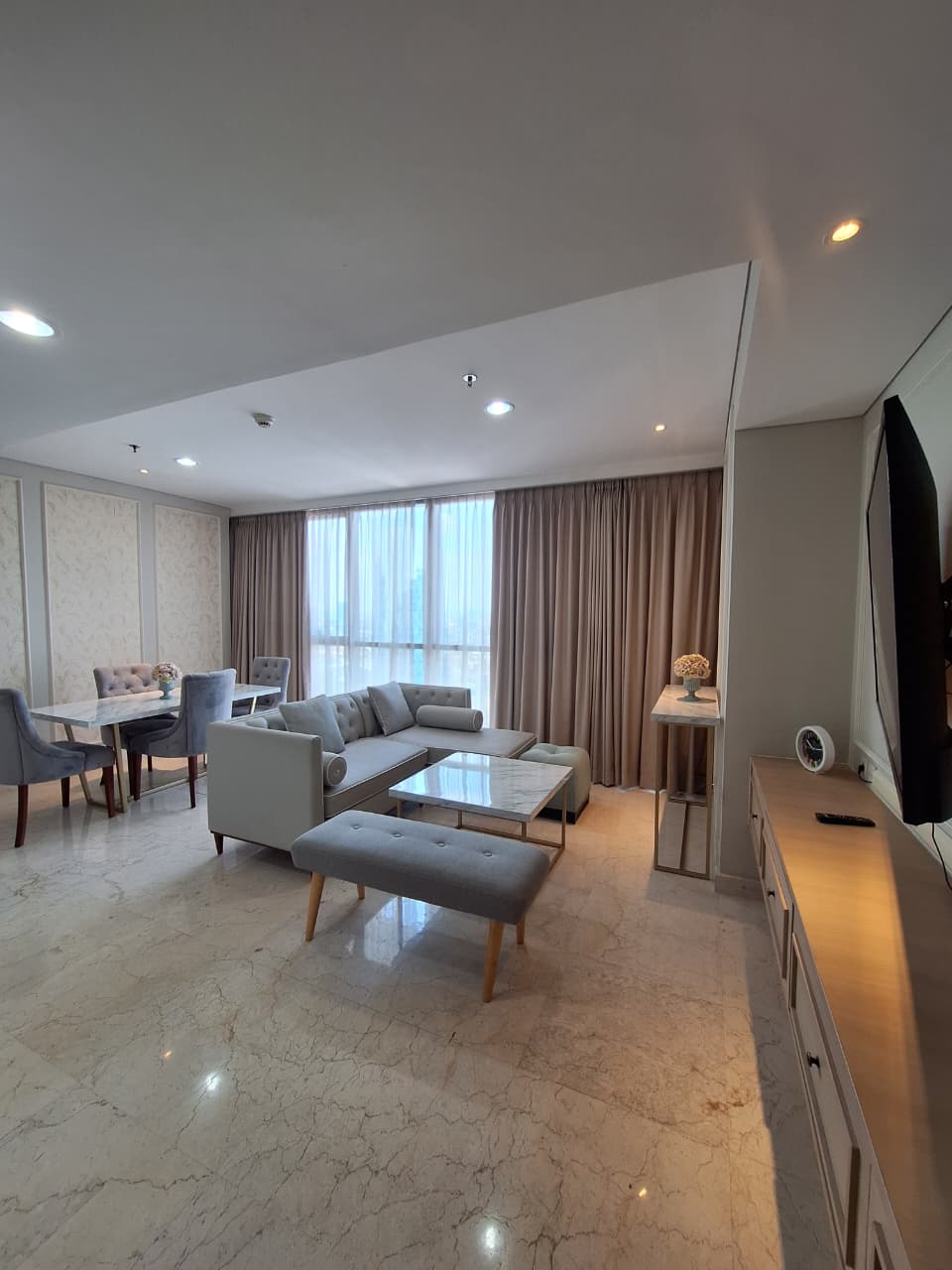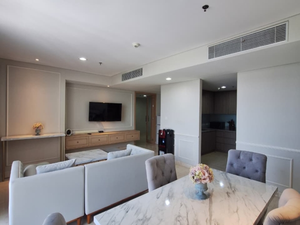 This beautifully furnished 2 bedroom at The Orchard – Ciputra World 2 Jakarta offers a generous 112 sqm of bright and thoughtfully designed living space. The unit features a spacious living and dining area, marble flooring, stylish modern interiors, and a fully equipped kitchen—perfect for residents seeking comfort and elegance. The building provides premium facilities including a swimming pool, gym, children’s play area, private lift lobby, and 24-hour security, all within the luxurious Ciputra World superblock.