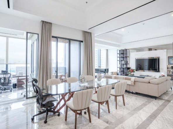 Spacious 3-bedroom apartment in The Langham SCBD, South Jakarta, offers a luxurious and convenient urban lifestyle. The property is rich in amenities designed to enhance residents’ comfort and leisure. The apartment features double private lifts for both privacy and convenience. There’s an array of relaxation and recreation options, including outdoor and indoor swimming pools, a serene garden, and an indoor sky pool with a jacuzzi. Fitness enthusiasts have access to a well-equipped gym and aerobic room, while those seeking rejuvenation can indulge in the spa and sauna. The Langham SCBD also offers an excellent restaurant and elegant ballrooms for special occasions. With a robust security parking system and round-the-clock CCTV, your peace of mind is a top priority here. Living in the heart of SCBD means you’re surrounded by a vibrant cityscape and famous landmarks, ensuring that every aspect of your urban lifestyle is met with ease.